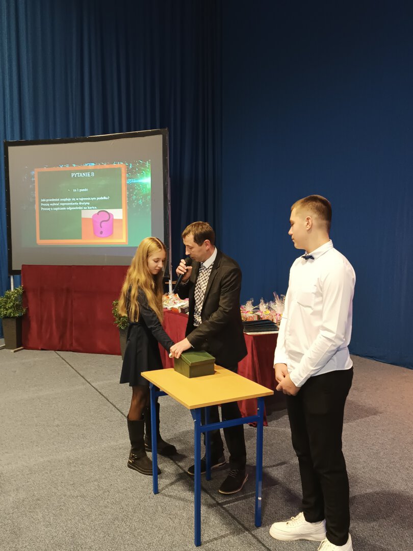 Drugi etap miał formę emocjonującej licytacji pytań. Nasi uczniowie odważnie podjęli wyzwanie, wylicytowali pytanie i – co najważniejsze – udzielili na nie poprawnej odpowiedzi! Pokazali tym samym nie tylko umiejętności matematyczne, ale również pewność siebie i umiejętność działania pod presją.