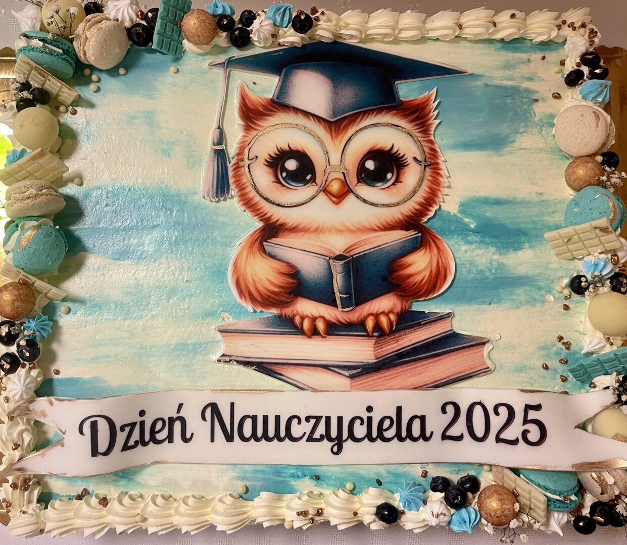 Po występie uczniów dyrekcja szkoły wręczyła nagrody dla nauczycieli i pracowników, doceniając ich codzienny trud i poświęcenie. Rada Rodziców również pamiętała o nauczycielach – piękny (i pyszny!) tort był słodkim symbolem wdzięczności.